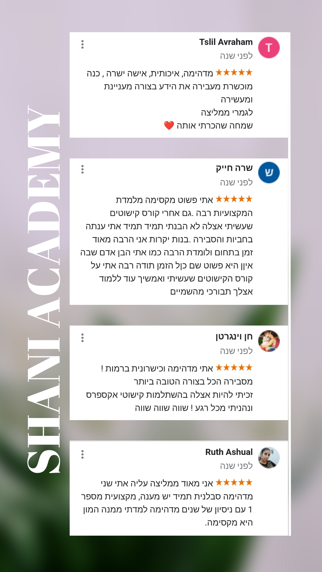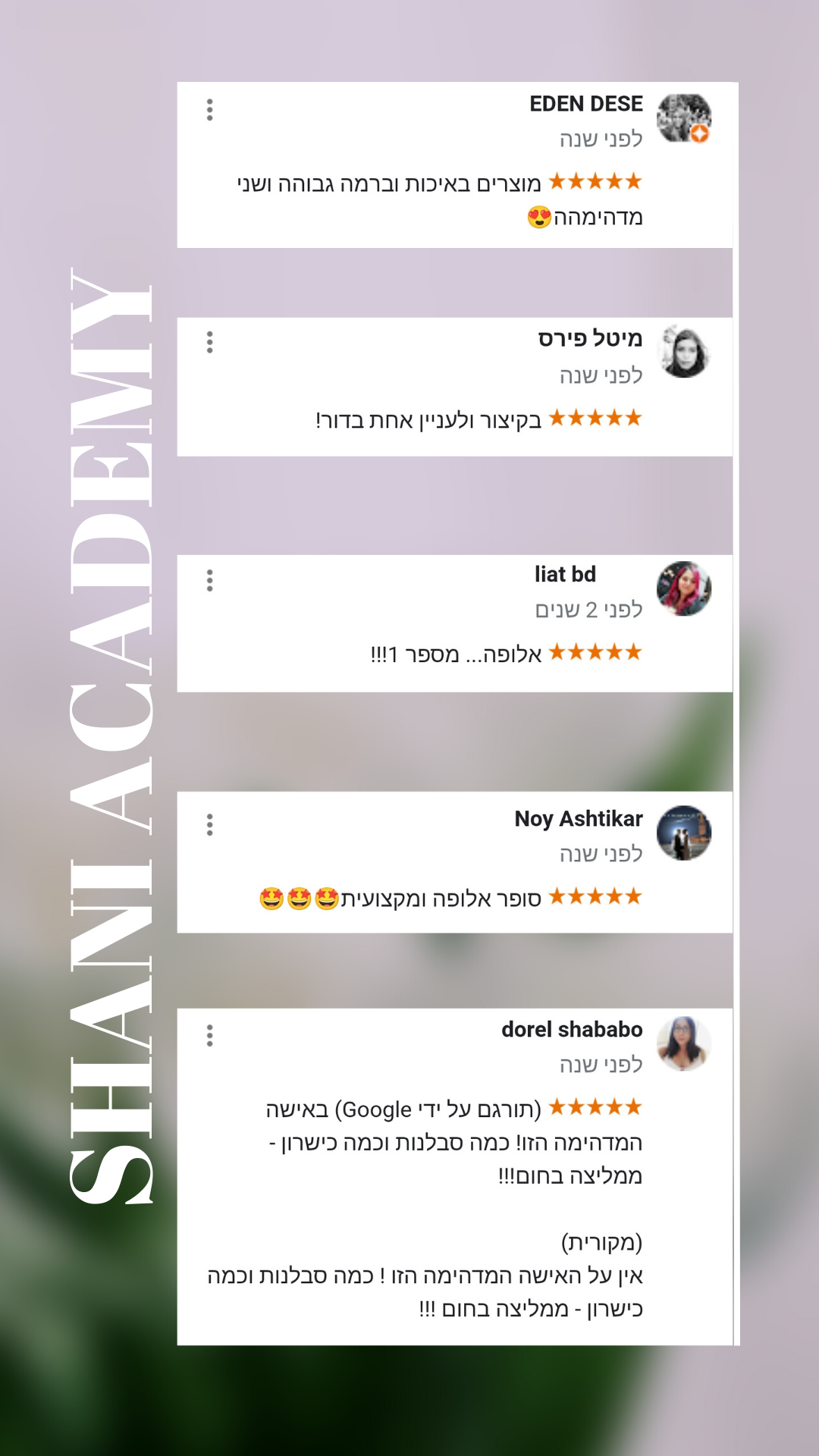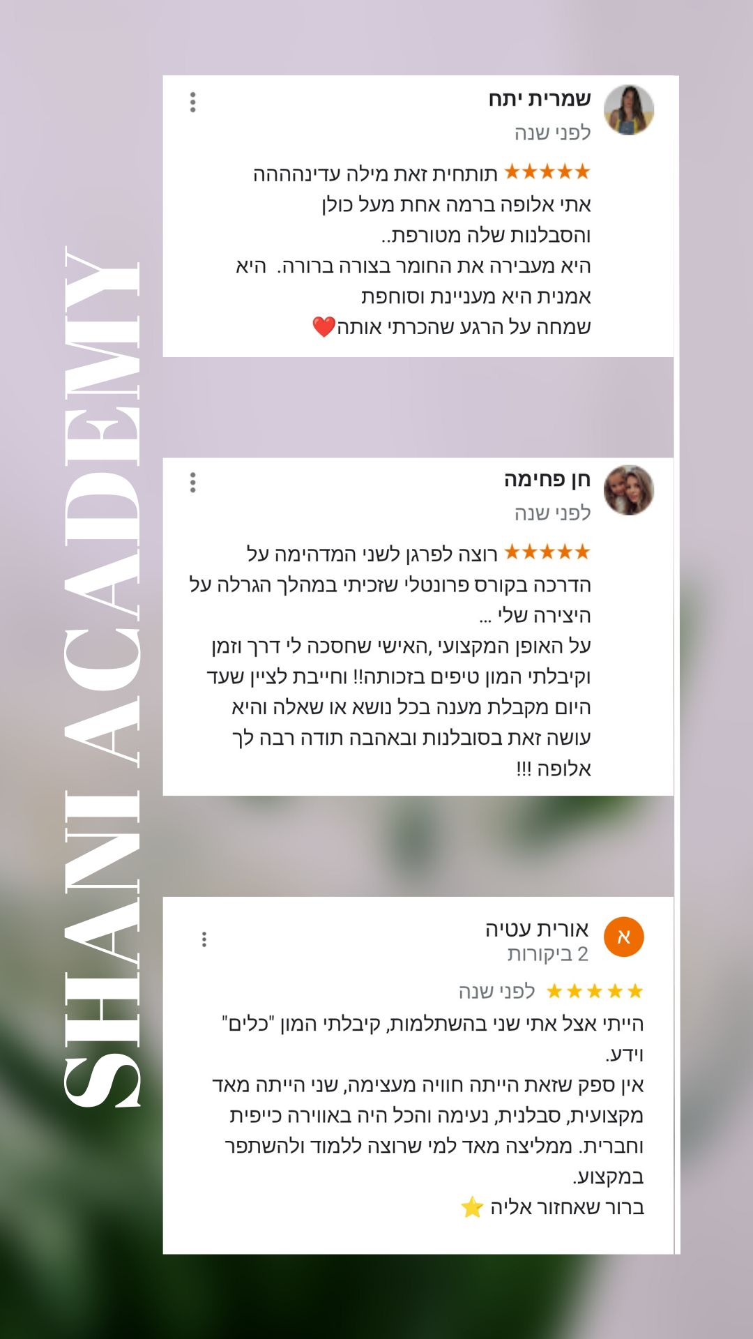 כשאת מפרסמת את העבודה שלך, תייגי אותי eti_shani_academy@ אשמח לראות את ההתקדמות שלך ולשתף אותה אצלי בסטורי ובפיד ובכך לחשוף אותך לקהל לקוחות פוטנציאלי נוסף!